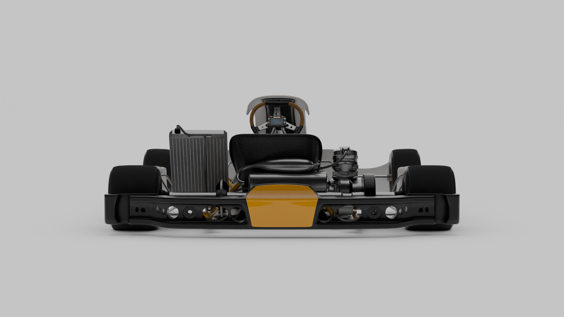 This is the brand new version of our beloved race kart. It is a custom-designed and crafted motorsport monster now available with new 2024 homologated bodywork and a "concept" undertray currently being tested on KZ karts. The undertray features the well-known Venturi effect used on current Formula One cars and our VA prototypes. The new panels are much sleeker and better represent our inspiration from the Birel Art Ry30 S16 chassis. The kart is now also complete with a more modern design featuring our grey, white, and yellow theme. A perfect model for any racing renders!